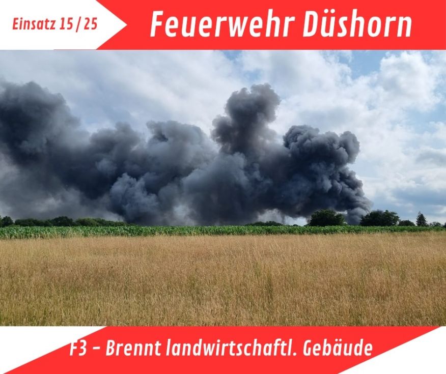 Bad Fallingbostel (mb) – Am Mittwochnachmittag kurz nach 17 Uhr wurde der Brand eines landwirtschaftlichen Gebäudes gemeldet. Sofort wurden Feuerwehren aus Bad Fallingbostel alarmiert. Beim Eintreffen brannte eine Halle von ca. 60 Meter x 30 Meter in voller Ausdehnung.