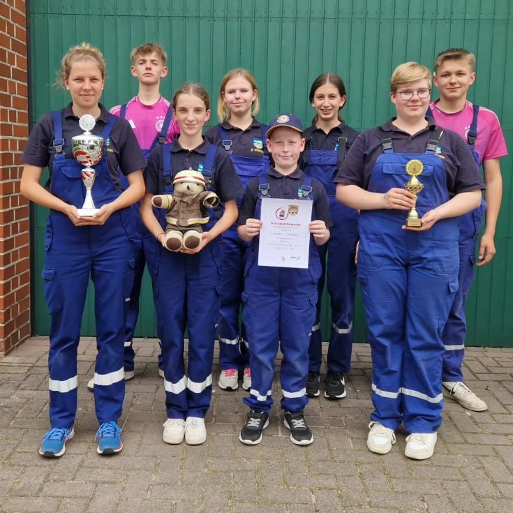 (mh) Am Sonntag fanden in Neuenkirchen die Kreiswettbewerbe der Jugendfeuerwehrender Kreisjugendfeuerwehr Heidekreis e.V. statt. Insgesamt gingen 28 Gruppen an den Start. Die Gruppe aus Düshorn erreichte einen sehr guten 4. Platz und erhielt die Auszeichnung für den besten B-Teil (Laufübung). Die Löschübung ( A-Teil) wurde bis auf zwei kleine Fehler auch gut absolviert. Glückwunsch an den 3-Fach Sieger Jugendfeuerwehr Honerdingen auf den Plätzen 1-3.