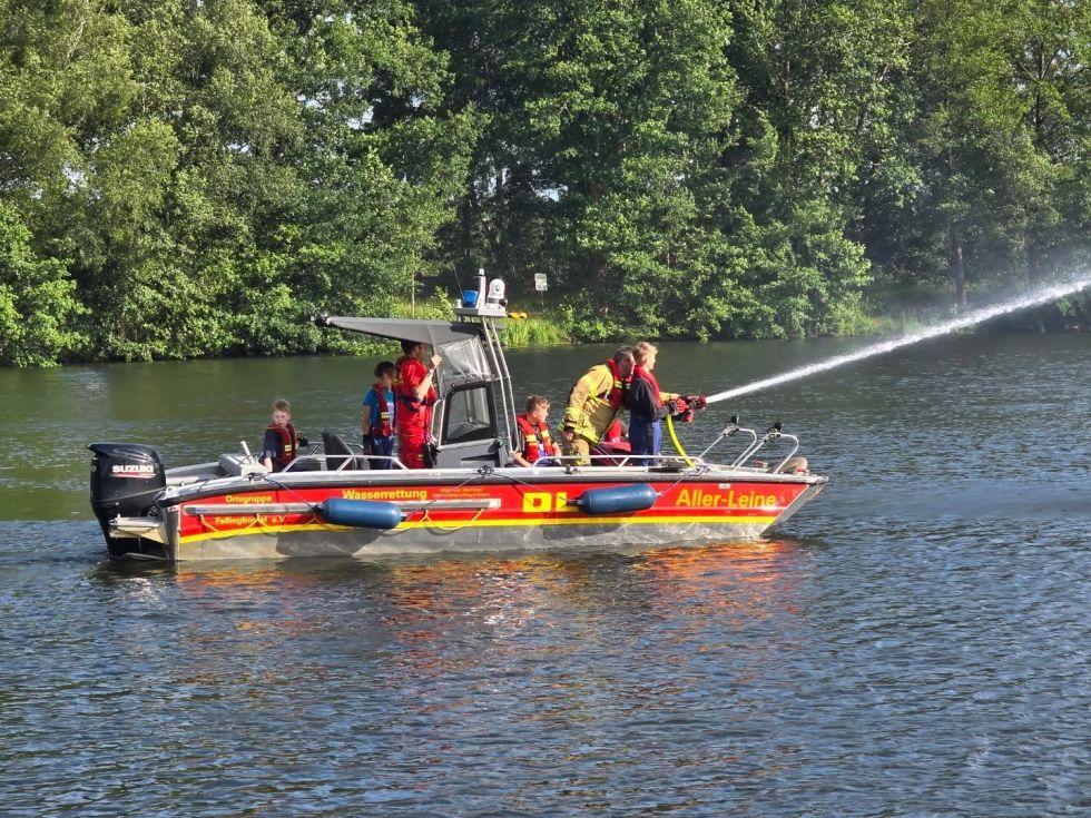 (mh) Einen abwechslungsreichen Dienst verbrachte die Jugendfeuerwehr im Strandbad Düshorn. Zwei Mitglieder der Deutschen Lebens-Rettungs-Gesellschaft (DLRG) waren mit ihrem Gerätewagen „Taucher und Wasserrettung“ sowie ihrem Mehrzweckboot vor Ort vertreten.