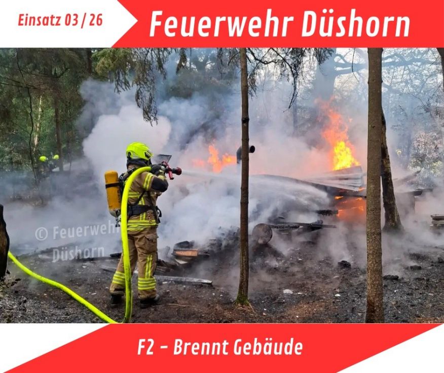 Am Samstagsmittag wurden die Feuerwehren Krelingen und Düshorn sowie die Feuerwehr Bad Fallingbostel mit dem Einsatzleitwagen und einem Tanklöschfahrzeug zu einem gemeldeten Gebäudebrand nach Krusenhausen alarmiert. Laut erster Meldung bestand zusätzlich die Gefahr, dass die Flammen auf angrenzende Waldflächen übergreifen könnten.Ebenfalls vor Ort waren die Polizei, Stadtbrandmeister Michael Schlüter sowie ein Rettungswagen des DRK.