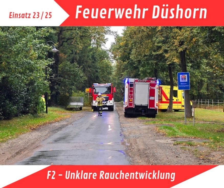 (mh) Am Samstagabend wurde die Feuerwehr Düshorn zu einer unklaren Rauchentwicklung in den Kiefernweg alarmiert. Vor Ort konnte schnell Entwarnung gegeben werden, denn es handelte sich nur um eine Feuertonne und die Einsatzkräfte konnten ohne Tätigkeit wieder einrücken.