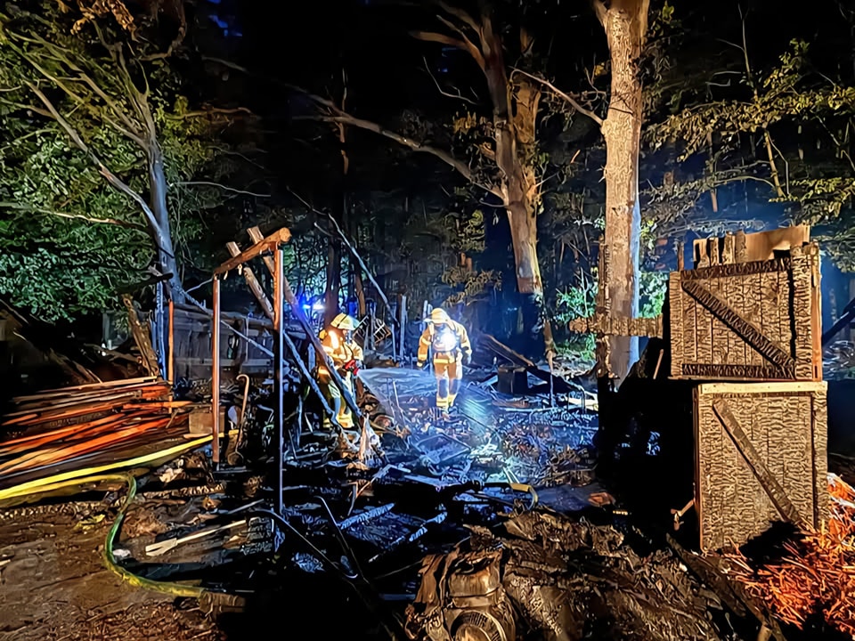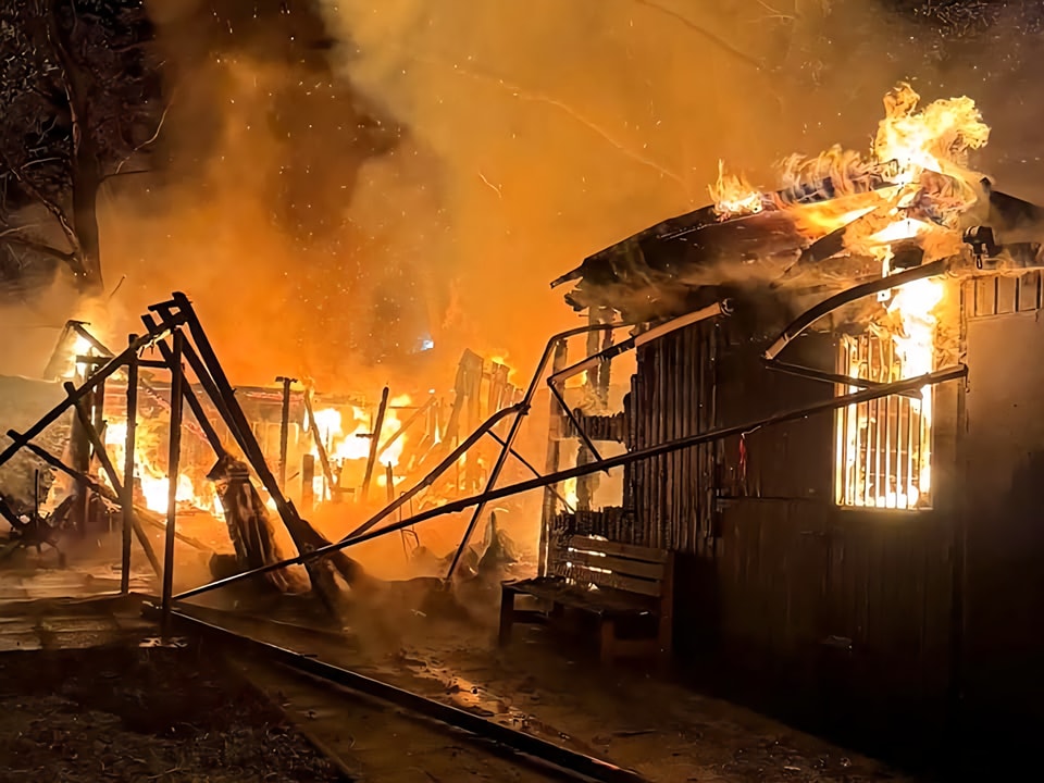 Vor Ort zeigte sich jedoch schnell, dass die Lage deutlich ernster war: Ein Schuppen sowie ein angrenzendes Nebengebäude standen beim Eintreffen der ersten Einsatzkräfte bereits in Vollbrand.