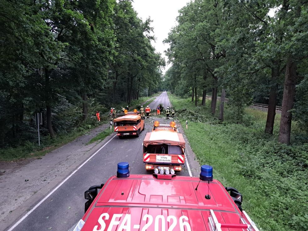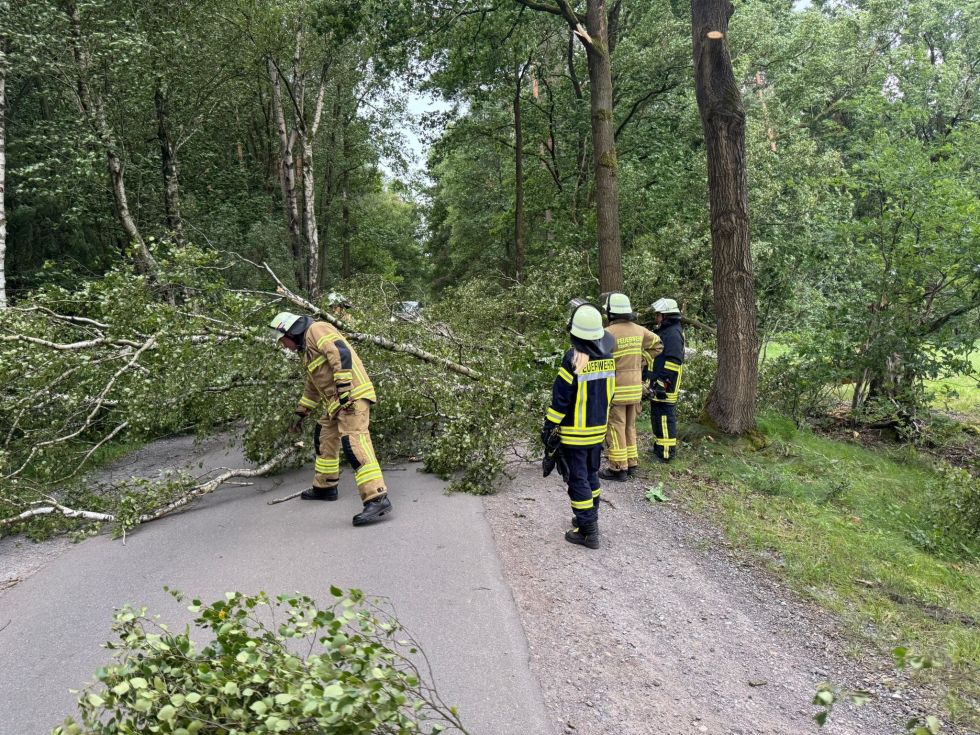 Kurz darauf wurde die gesamte Feuerwehr zum ersten Einsatz in den Rehrweg alarmiert. Dort lag ein Baum quer auf der Fahrbahn. Danach folgte eine weitere Einsatzstelle auf der L190 nahe der Autobahnauffahrt. Anschließend ging es zur Unterstützung nach Walsrode. Dort zog sich der Einsatz bis in die Nachtstunden, wo auch die Drehleiter eingesetzt wurde. Gegen 0 Uhr waren die Fahrzeuge wieder im Feuerwehrhaus.