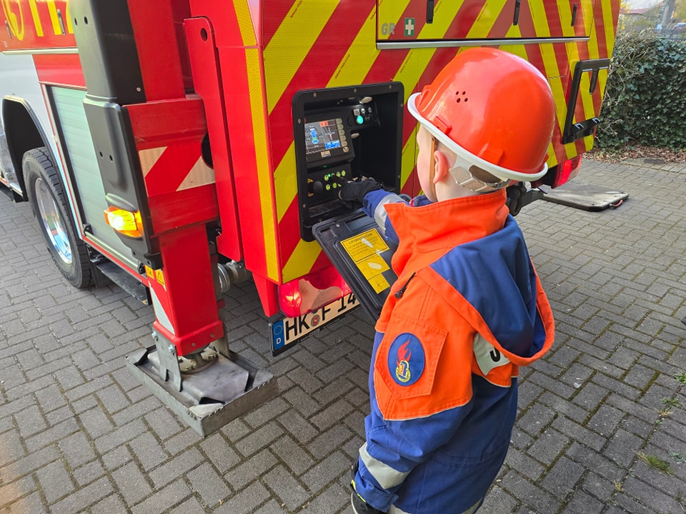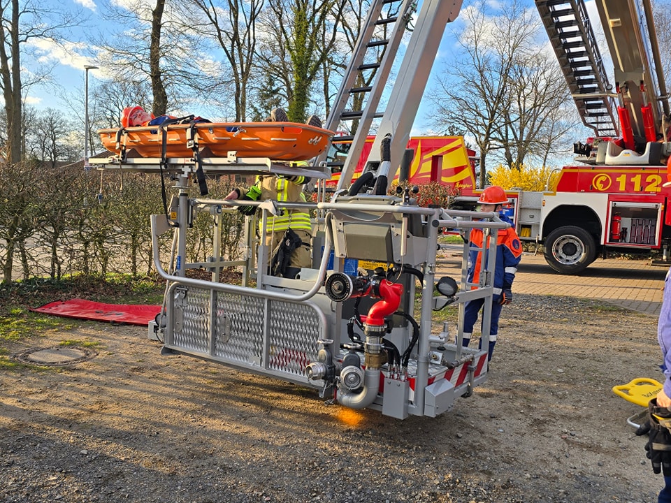 Nach einem kurzen Rundgang ums Fahrzeug und Erläuterung der vorhandenen Gerätschaften, wurde der Gelenkmast ausgefahren. Dabei konnten alle unterstützten beim Aufbau sowie Abbau, z.B beim Fahren der Stützen. Simuliert wurden dann noch die unterschiedlichen Möglichkeiten des Transport einer verletzten Person. Schönen Dank an die beiden Kameraden der Freiwillige Feuerwehr Bad Fallingbostel