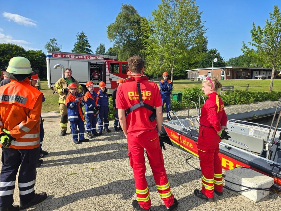 (mh) Einen abwechslungsreichen Dienst verbrachte die Jugendfeuerwehr im Strandbad Düshorn. Zwei Mitglieder der Deutschen Lebens-Rettungs-Gesellschaft (DLRG) waren mit ihrem Gerätewagen „Taucher und Wasserrettung“ sowie ihrem Mehrzweckboot vor Ort vertreten.