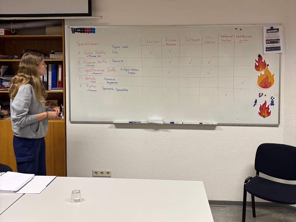 Die Kinderfeuerwehr schnupperte bei einem Dienst der Jugendfeuerwehr hinein. Nach einer kurzen Begrüßung wurde zuerst besprochen was ein Feuer benötigt um zu brennen. Danach folgten die Brandklassen mit den dazugehörigen Löschmitteln.