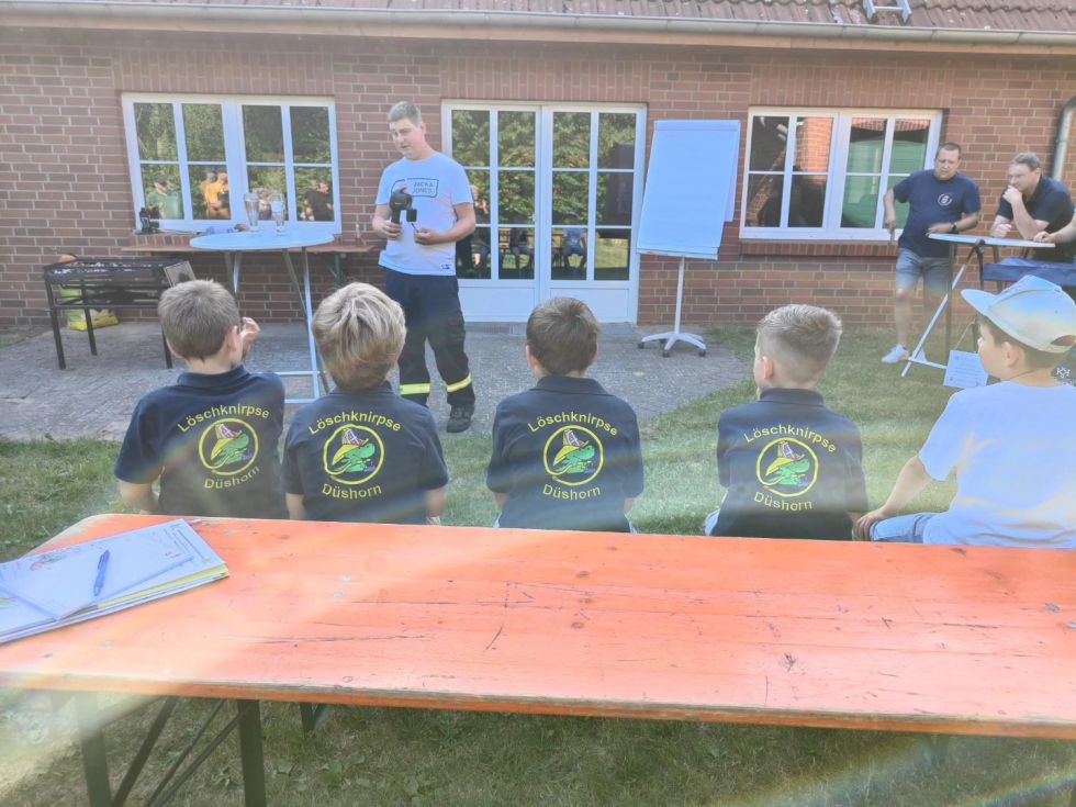 (mh) Der letzte Dienst der Kinderfeuerwehr fand am Freitag zusammen mit den Eltern und Geschwistern am Feuerwehrhaus statt. Nach einer kurzen Begrüßung der 50 Gäste wurden die neuesten Anschaffungen präsentiert. Wieder einmal wurde das Thema Atemschutz behandelt, denn auch den Eltern sollten die selbstgebastelten Atemschutzgeräte präsentiert werden.