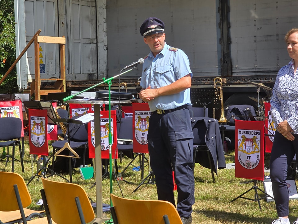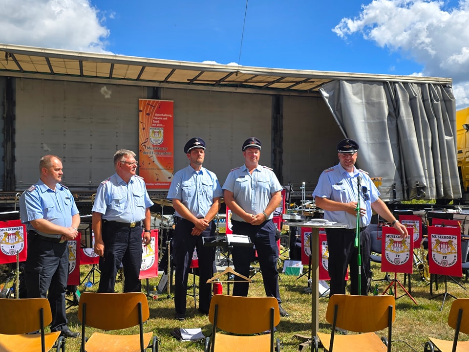 Ortsbrandmeister Schwanke gab einen kurzen Abriss über den Beschaffungsprozess des Fahrzeuges, der im Juni 2022 mit den ersten Planungen begann und am 19.07.2024 mit der Auslieferung des neuen Fahrzeuges einen Abschluss fand. Das neue Fahrzeug ersetzt das bisherige Mannschaftstransportfahrzeug, einen Renault Traffic, welcher nach knapp 20 Jahren im Einsatzdienst in den wohlverdienten Ruhestand verabschiedet wurde.