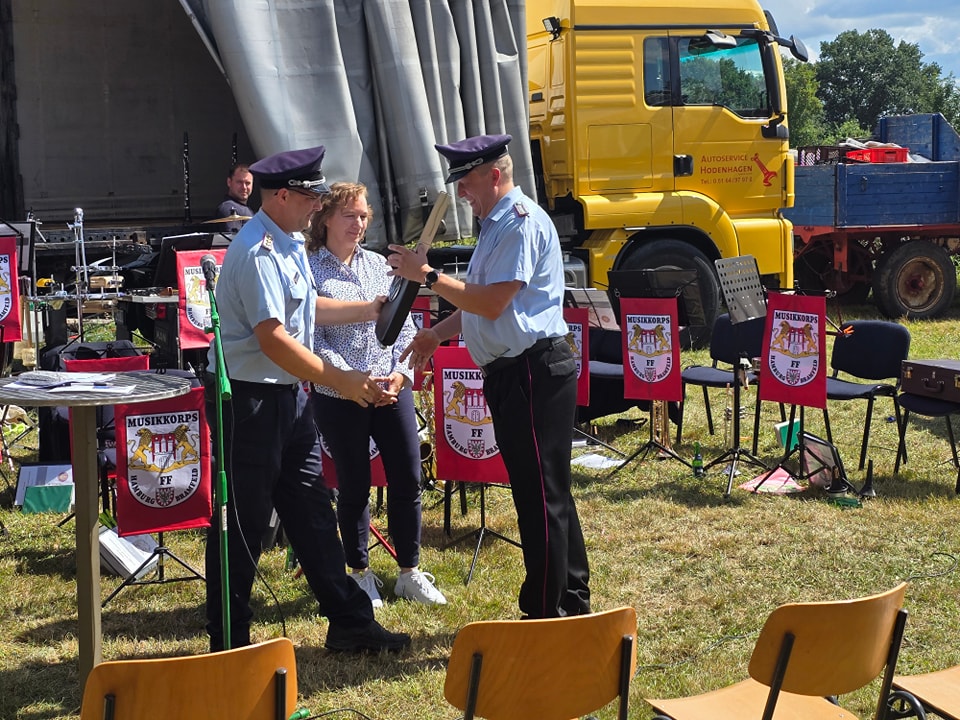 (tk) Bei besten Sommerwetter fand am 11.08.2024 bei der Freiwilligen Feuerwehr Düshorn ein Tag der offenen Tür anlässlich des 77. Gründungsjubiläums der Feuerwehr statt. Doch nicht nur das Jubiläum gab Anlass zur Freude. Im Rahmen der Feierlichkeiten konnte das neue Mannschaftstransportfahrzeug (MTF) für die Feuerwehr offiziell übergeben werden.