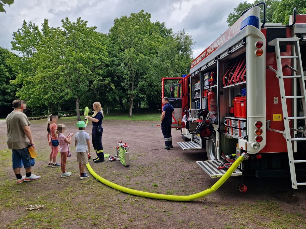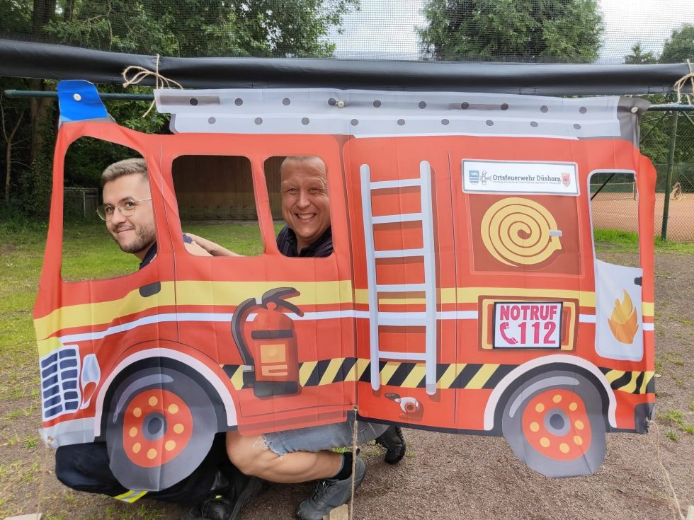 Die Feuerwehr Düshorn war mit dem Löschfahrzeug vertreten. Neben der Fahrzeugbesichtigung gab es auch die Möglichkeit sich an der Fahrzeugfotowand fotografieren zu lassen. Zudem konnten mit einer Kübelspritze erste Löschübungen durchgeführt werden. Ein kleiner Stand mit Informationen und Bastelmöglichkeiten rundete das Angebot ab.