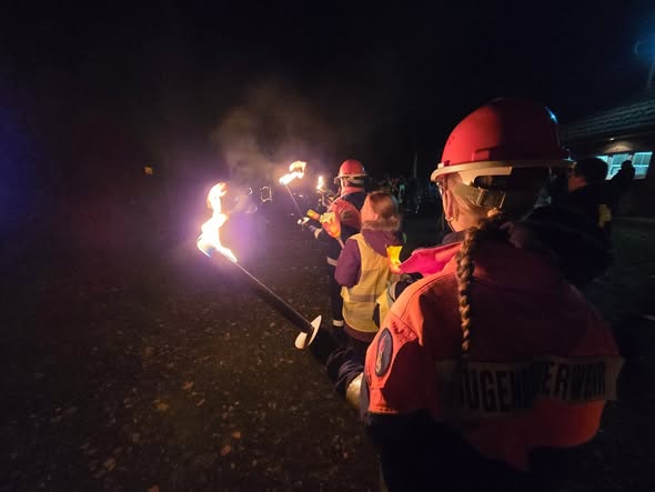 (mh) Am Freitagabend fand das diesjährige Laternenfest gemeinsam mit dem Spielmannszug Düshorn und der Kita Düshorn statt. Nach einem gemeinsamen Lied zu Beginn folgte der Umzug durch das Dorf. Die Kinder- und Jugendfeuerwehr begleitete mit Fackeln die rund 500Teilnehmer.