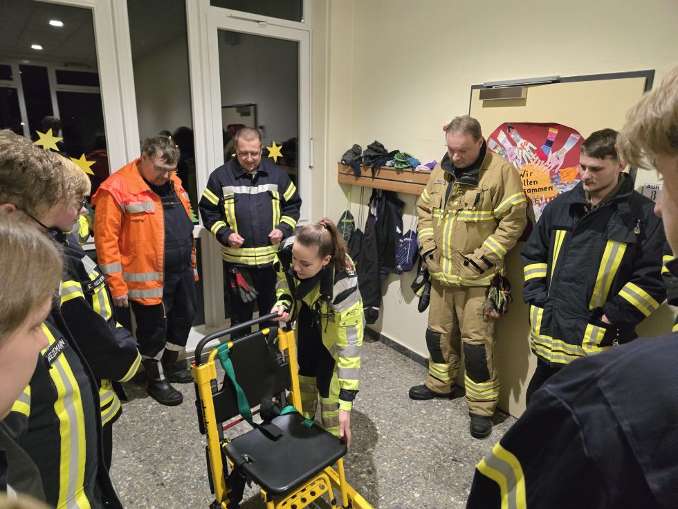mh) Das gemeinsame Üben mit verschiedenen Hilfsorganisationen dient der besseren und schnelleren Zusammenarbeit an den Einsatzstellen.Aus diesem Grund hatte die Feuerwehr Düshorn unter der Leitung von Gruppenführer Mirco Zurovskis zusammen mit dem DRK Walsrode einen interessanten Übungsdienst zum Thema „Tragehilfe“ vorbereitet.