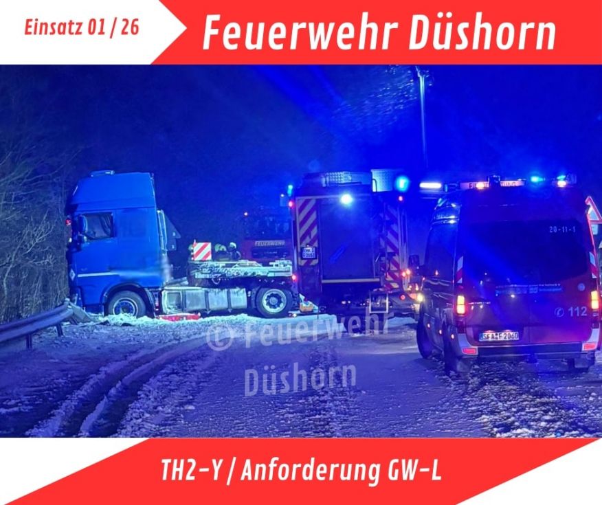 (mh) Am Freitagnachmittag wurde die Feuerwehr Düshorn mit dem Gerätewagen Logistik zur Unterstützung auf die A27 alarmiert. Dort waren die Feuerwehren Krelingen und Walsrode bereits im Einsatz, nachdem sich ein Verkehrsunfall mit einem LKW und PKW ereignet hatte.