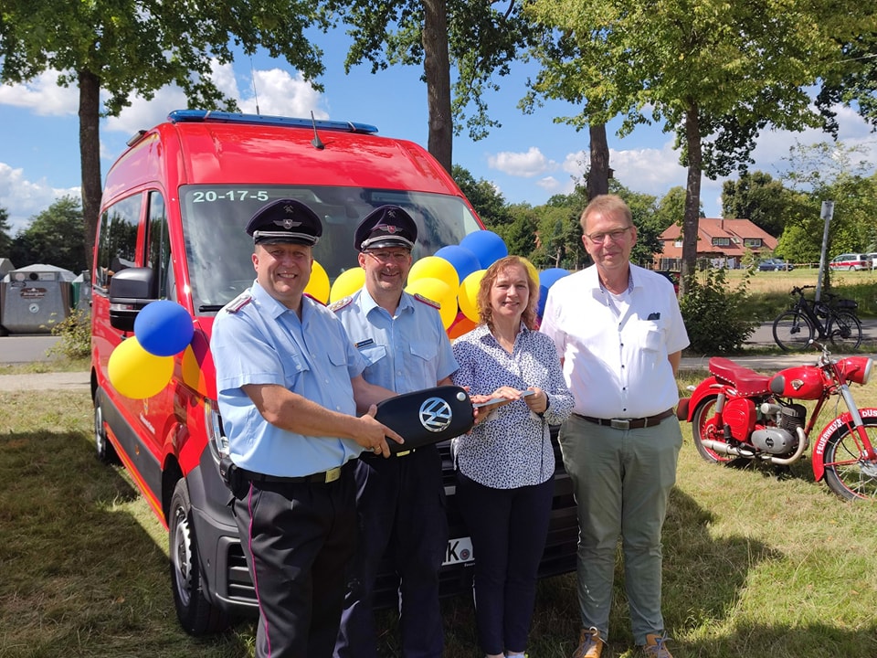 (tk) Bei besten Sommerwetter fand am 11.08.2024 bei der Freiwilligen Feuerwehr Düshorn ein Tag der offenen Tür anlässlich des 77. Gründungsjubiläums der Feuerwehr statt. Doch nicht nur das Jubiläum gab Anlass zur Freude. Im Rahmen der Feierlichkeiten konnte das neue Mannschaftstransportfahrzeug (MTF) für die Feuerwehr offiziell übergeben werden.