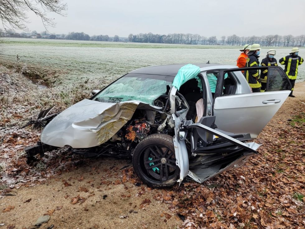 Am 23.12.2021 gegen 12 Uhr kam es aus noch nicht geklärter Ursache im Düshorner Rehrweg zu einem schweren Verkehrsunfall.