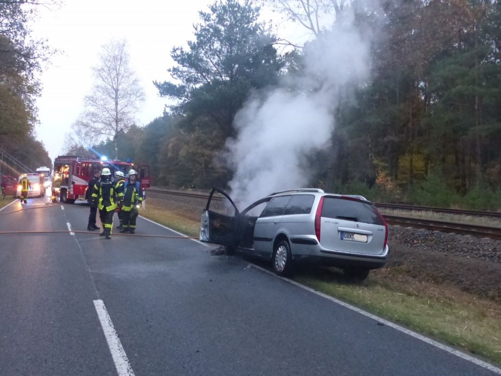Am Freitag kam es gegen 16:00 Uhr auf der L 190 zwischen Hodenhagen und Beetenbrück zu einem Fahrzeugbrand. Die Ortsfeuerwehr Düshorn war vor Ort, bei Ankunft der ehrenamtlichen Feuerwehrleute stand der PKW im Grünstreifen und brannte im vorderen Bereich in voller Ausdehnung. Die Flammen konnten unter Atemschutz schnell gelöscht werden.