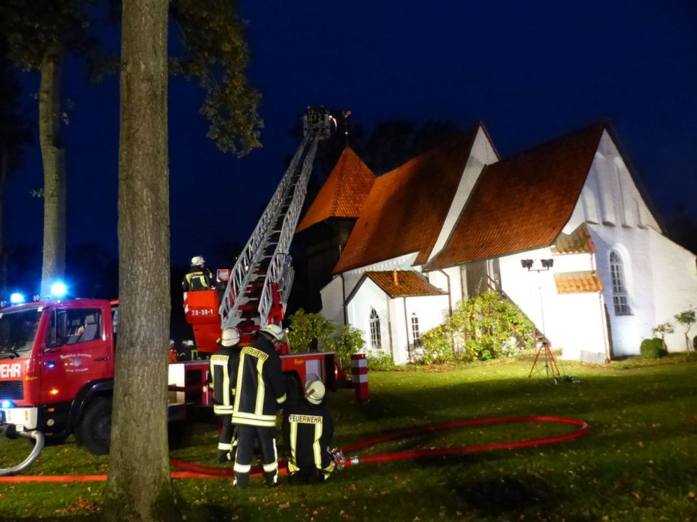 Am frühen Donnerstagabend wurde gegen 18:15 Uhr in der Meinerdinger Kirche ein Brand im Glockenturm gemeldet. Der örtliche Pastor Thoma Delventhal hatte mehrere Gäste in dem Gotteshaus zu Besuch, als dort durch einen technischen Defekt ein Feuer entstand. Er selber schaffte es noch aus dem Gebäude zu flüchten, während den acht Besuchern der Weg durch Rauch versperrt wurde. Nach dem Eingang des Notrufes in der Leitstelle Soltau wurden sofort die Ortsfeuerwehren Honerdingen, Düshorn, Benzen und Walsrode alarmiert.