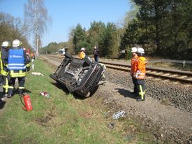 Glück hatte der PKW-Fahrer aus Hodenhagen bei einem Unfall am Mittwoch. Gegen 12.40 Uhr befuhr dieser mit seinem Renault die L190 Richtung Walsrode. Am Bahnübergang "Düshorner Bahnhof" wollte ein LKW von der L163 kommend auf die L190 Richtung Hodenhagen abbiegen. Dabei übersah er den Hodenhagener, der dadurch in den Seitengraben abkam und am Bahndamm auf der Seite liegen blieb.