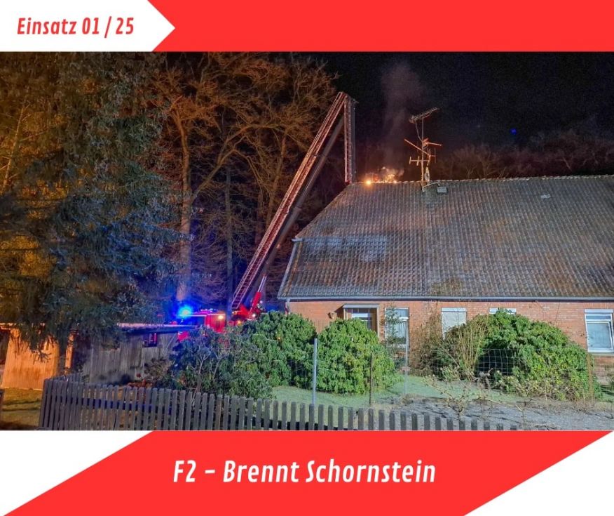 Am frühen Sonntagmorgen wurde die Feuerwehr Krelingen mit den Feuerwehren Bad Fallingbostel und Düshorn zu einem Schornsteinbrand mitten in Krelingen gerufen. Vor Ort bestätigte sich die Lage. Der zusätzlich alarmierte Schornsteinfeger konnte dank des gut positionierten Gelenkmasts aus Bad Fallingbostel schnell an den Brandort am oberen Schornsteinende gelangen. Zeitgleich wurde eine Wasserversorgung aufgebaut.