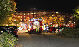 Ein Großaufgebot an allen verfügbaren Feuerwehren aus der Umgebung hielt sich am späten Montagabend, 15. September, am Heidekreisklinikum in Walsrode bereit, um im Katastrophenfall sofort verfügbar zu sein: Gegen 20.30 Uhr bemerkte eine Zeugin im Krankenhaus eine Reizung im Halsbereich und vernahm Gasgeruch. Daraufhin wurde Gasalarm ausgelöst, der eine Kettenreaktion zur Folge hatte. Die Feuerwehr aus Walsrode war innerhalb von Minuten vor Ort, nachalarmiert wurden die Wehren aus Bad Fallingbostel, Bomlitz, Honerdingen, Düshorn und Verden, außerdem Notarztwagen. Insgesamt waren mehr als 100 Rettungskräfte im Einsatz.Die Helfer stellten sich auf eine Evakuierung des Krankenhauses ein. Diese wurde aber in Absprache mit den Krankenhausärzten nicht vorgenommen, weil ein technischer Defekt schon früh ausgeschlossen werden konnte. Der betroffene Krankenhausbereich wurde belüftet. Bei der Ursache für den Gasgeruch tappen Feuerwehr und Polizei im Dunkeln. Der Gebrauch von Reizgas durch Unbekannte kann nicht ausgeschlossen werden. Ironie des Schicksals: Am Sonnabend erst war ein Großeinsatz an Ort und Stelle geübt worden.