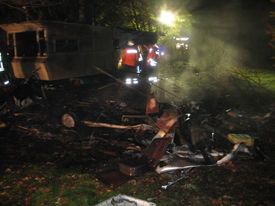 Gegen 2 Uhr (Sommerzeit) am Sonntagmorgen wurden die Gäste auf dem Campingplatz in Düshorn durch laute Geräusche geweckt. Ein Feuerschein erhellte die Umgebung. Umgehend wurde die Feuerwehr Düshorn alarmiert. Bei Ankunft der Einsatzkräfte war ein Wohnwagen fast vollständig heruntergebrannt. Der 1. Trupp der die Brandbekämpfung vornahm, entdeckte eine Gasflasche, die dann entfernt und von einem 2. Trupp gekühlt wurde.