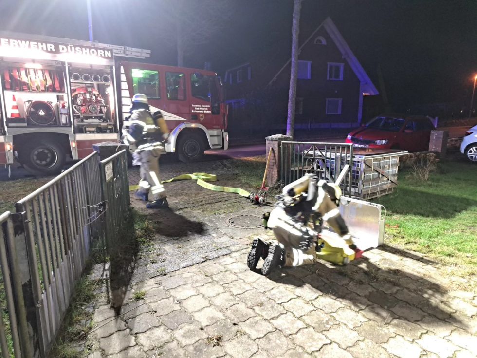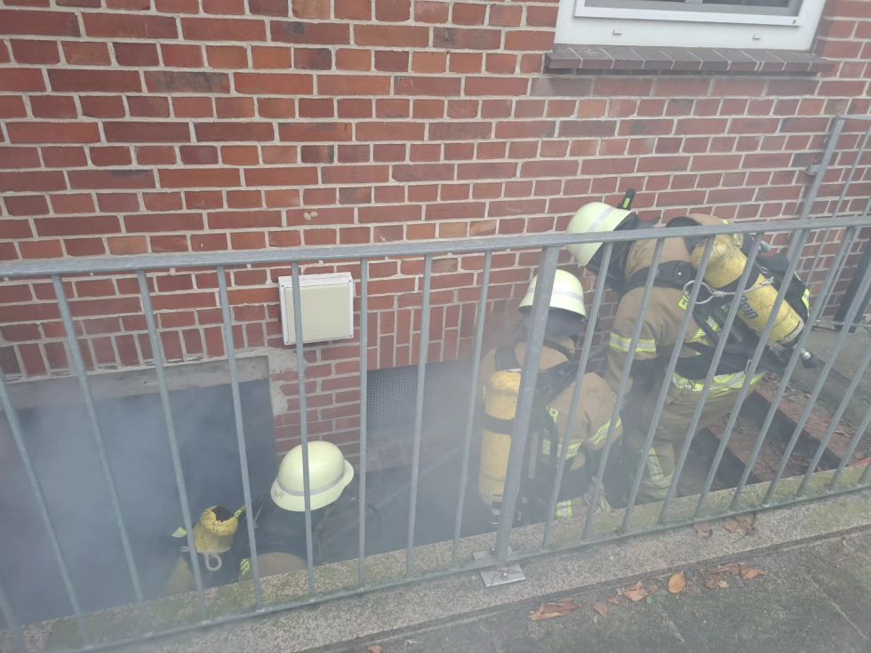 (mh) Der eigentliche Dienst in der Brandsimulationsanlage in Schneeheide musste aufgrund eines technischen Defekts in die Räumlichkeiten der Grundschule Düshorn verlegt werden. Der Hausmeister und Feuerwehrkamerad Thomas Reichstein unterstützte dabei. In den von Mirco Zurovskis und Carsten Küddelsmann vorbereiteten Einsatzübungen lag der Fokus auf dem Vorgehen in Kellerräumen und der dortigen Menschenrettung.