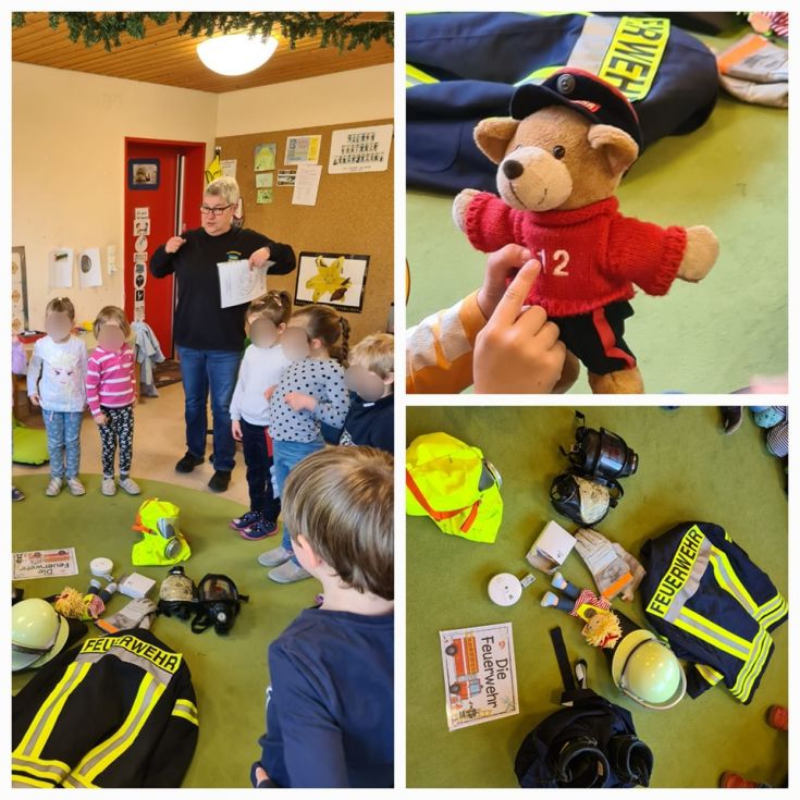 Einen spannenden Vormittag für die Kinder in der Kita-Düshorn. Brandschutzerzieherin Dina Reichstein war zu Besuch und hatte jede Menge im Gepäck dabei. Neben der Erklärung zu dem richtigen Verhalten bei Feuer gab es auch einen kleinen Einblick in die Feuerwehrausrüstung. Jacke und Helm probieren waren schon aufregend sowie der Blick durch eine abgeklebte Atemschutzmaske, die den Blick der Feuerwehreinsatzkraft im Einsatzfall simuliert.