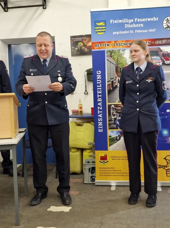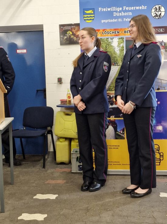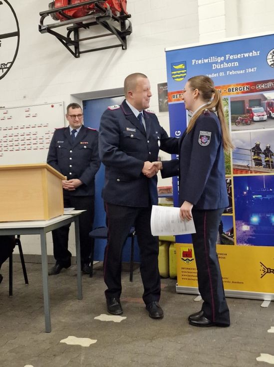 Aus den Reihen der Jugendfeuerwehr konnte Katharina Rick in die Einsatzabteilung übernommen. Zu Feuerwehrfrauen wurden Emma Gerlhoff und Katharina Rick ernannt. Den Dienstgrad der Hauptfeuerwehrfrau bzw. Hauptfeuerwehrmann tragen ab sofort Henrike Albers, Marvin Schmidt und Ramonn Derks.