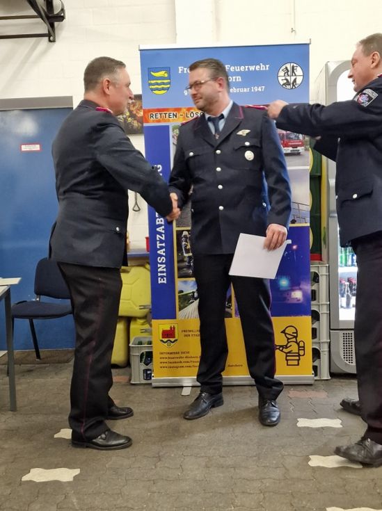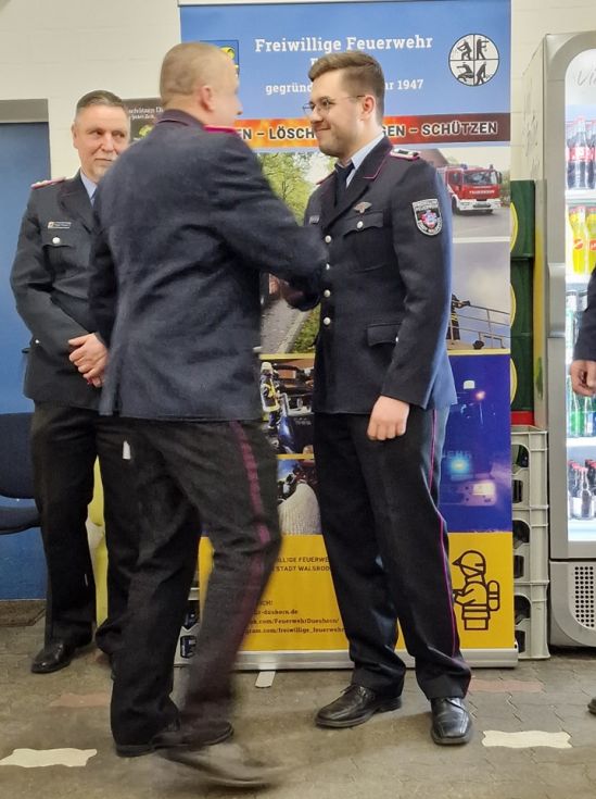 Der stellvertretende Stadtbrandmeister Holger Krause, als einziger Gast an diesem Abend, richtete die Grüße der Stadtfeuerwehr an die Versammlung. Berichtet wurde zudem Aktuelles zur Beschaffung der neuen Einsatzanzüge und Feuerwehrhelme. Zum Abschluss beförderte er Ortsbrandmeister Andre Schwanke zum Brandmeister.