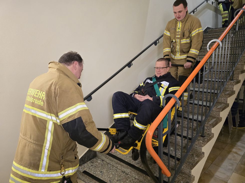 Feuerwehr Düshorn und Rettungsdienst üben gemeinsam - Tragehilfe im Fokus