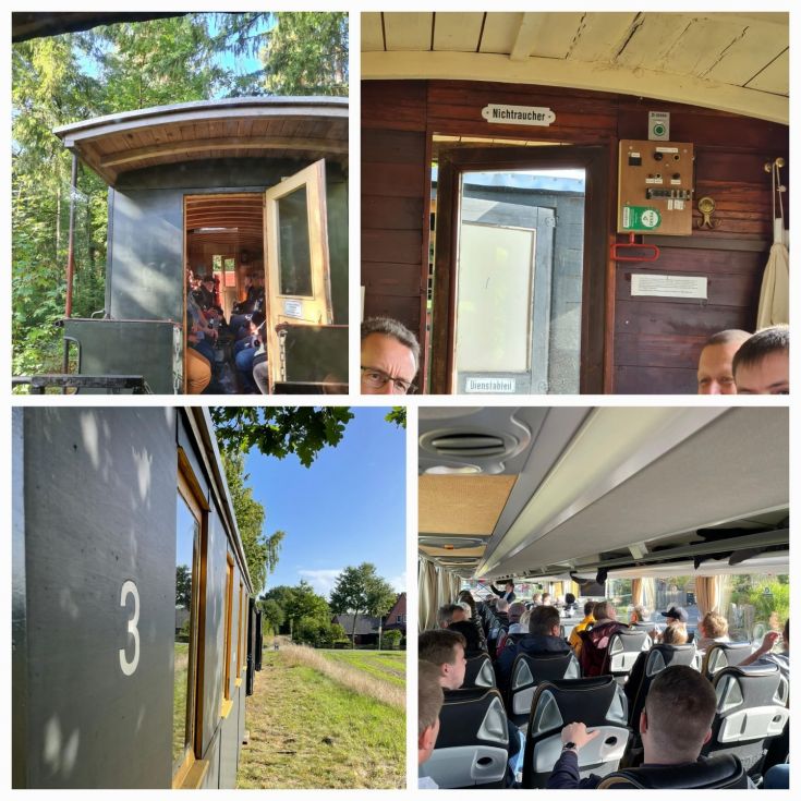 Kameradschaftsausflug auf der Straße, der Schiene und dem Wasser am vergangenen Wochenende. Gestartet wurde mit einem ausgiebigen Frühstück am Feuerwehrhaus. Danach ging es mit dem Bus Richtung Altenboitzen „Hauptbahnhof". Von dort ging es mit der Böhmethalbahn weiter. Auch ein Bahnhof nach alter Art konnte in Hollige als Zwischenstation besichtig werden. Die Fahrt endete in Vorwalsrode. Von dort ging es mit dem Bus weiter nach Jeversen. Dort stieg man auf das Allerfloss und die Fahrt ging stromabwärts Richtung Heimat.