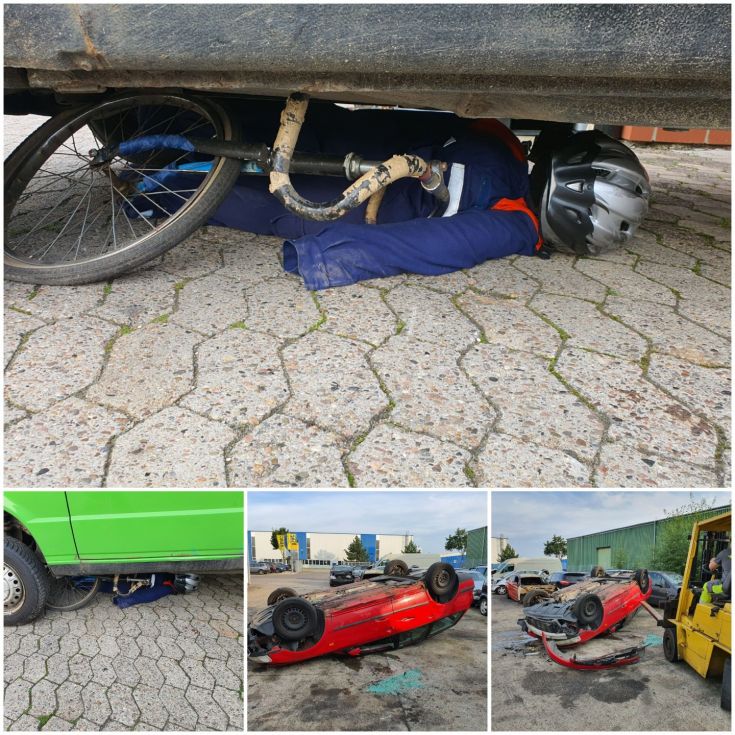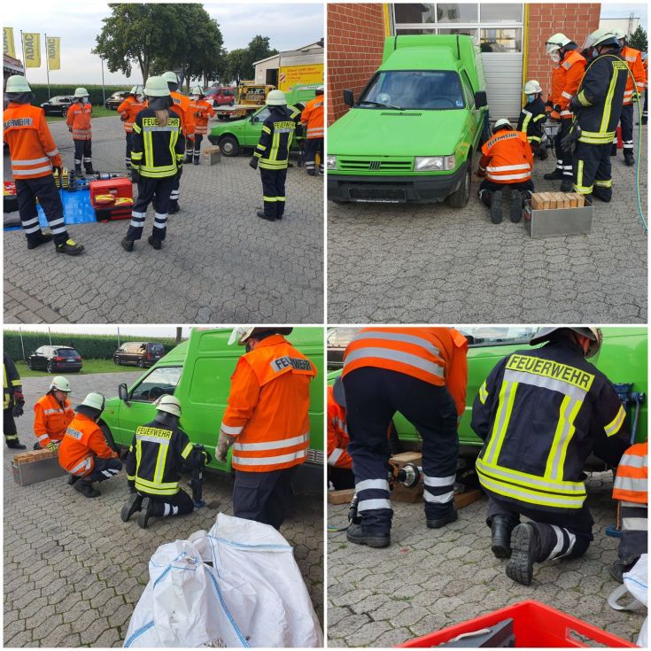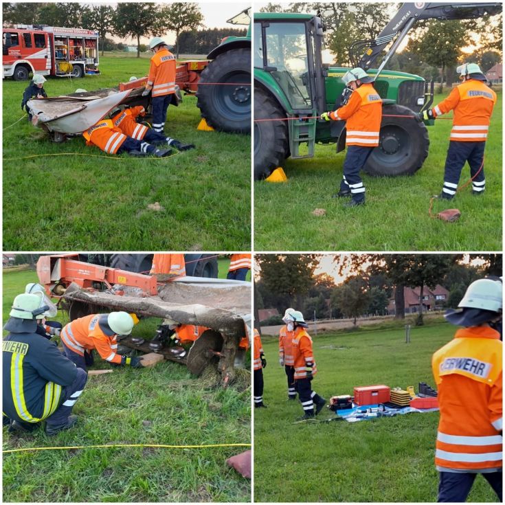 Bei der Einsatzübung galt es unter anderem eine eingeklemmte Person unter einem landwirtschaftlichen Fahrzeug zu befreien.Dank gilt dem Autoservice Hodenhagen GmbH & Co. KG für das Bereitstellen der PKW'S und des Übungsplatz.