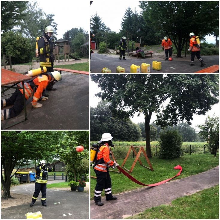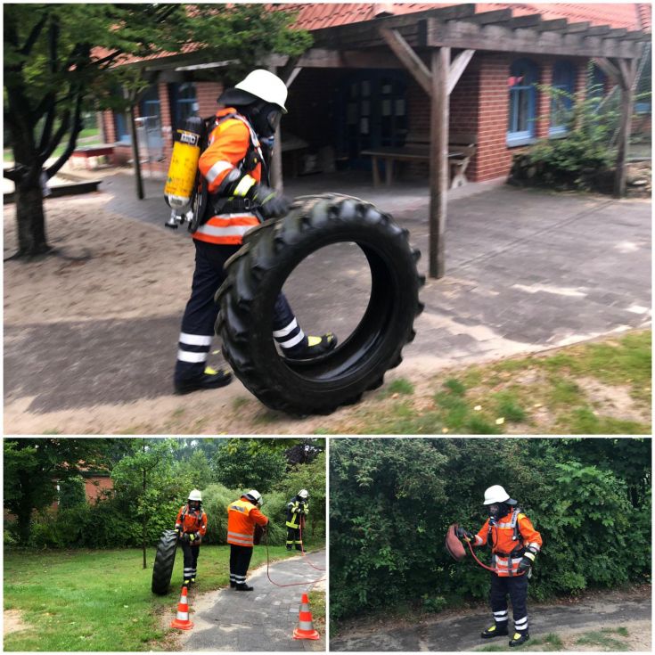 An den Abenden standen Technische Hilfeleistung, Atemschutzgeräteträgerdienst und Einsatzübungen auf dem Dienstplan. An zwei PKW's konnten zahlreiche Handlings wieder einmal durchgeführt werden und die jüngeren Kamerad*innen an die Technik herangeführt werden.Beim Atemschutzdienst hatte sich der Atemschutzgerätewart Mirco Zurovskis einen kleinen Parcours ausgedacht der zugleich als Belastung- und Gewöhnungsübung ausgelegt war. So galt es unteranderem einen großen Treckerreifen zu bewegen, Schaumkanister zu bewegen und Bänke und Tisch als Hindernisse zu überwinden.