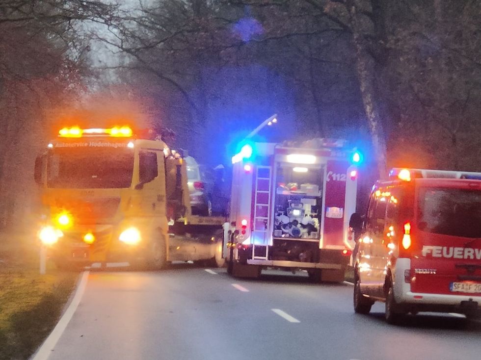 Am frühen Montagmorgen wurde die Feuerwehr Düshorn zu einem gemeldeten PKW Brand auf die Landesstrasse 163 Richtung Düshorn Bahnhof alarmiert. Beim Eintreffen bot sich folgende Lage. Ein PKW war von der Straße abgekommen und gegen einen Baum geprallt.