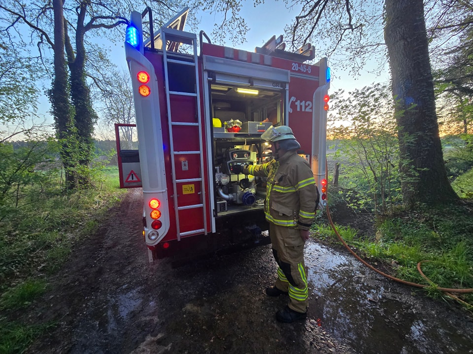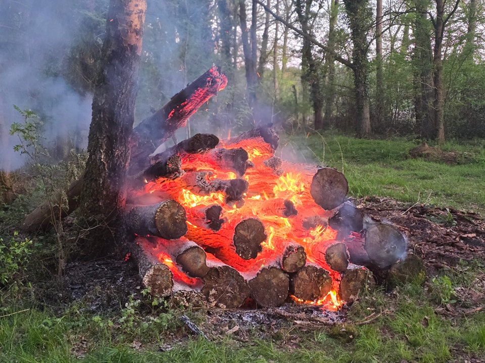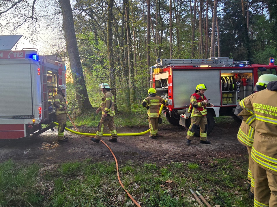 (mh) Am frühen Montagmorgen wurden die Einsatzkräfte der Feuerwehren Düshorn und Krelingen mit dem Stichwort „FW1-Brennt Wald / Unterholz“ in die Ludwig-Ralhfs-Straße in Düshorn alarmiert. Bei Ankunft an der Einsatzstelle, die in einem Waldstück kurz vor der Autobahn A27 lag, brannte ein Stapel Stammholz der zur Hälfte in Flammen stand.