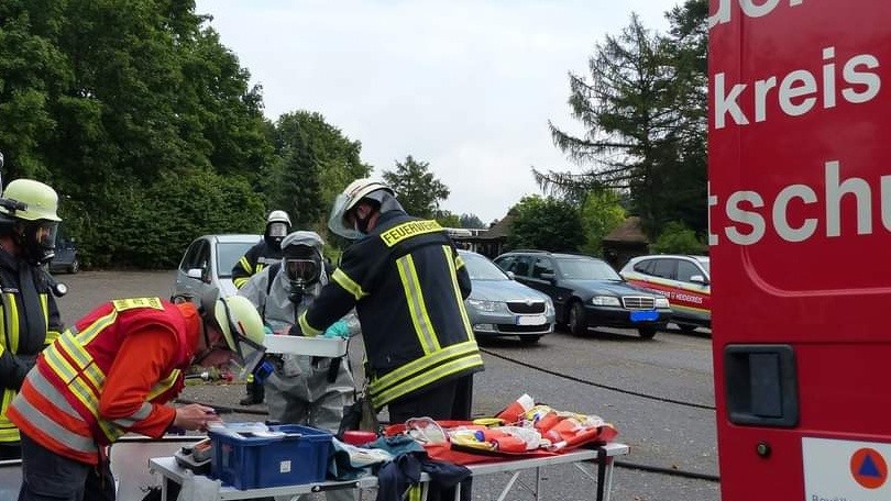 Gegen 10:45 Uhr im Serengeti-Park Hodenhagen zu einem umfangreichen Einsatz. Dort wurden in mehreren Kassenhäuschen Rückstände einer Flüssigkeit festgestellt, die bei Mitarbeitern Reizungen der Atemwege und der Haut auslösten. Daraufhin rückte neben der Polizei auch die Ortsfeuerwehr Hodenhagen, die Ortsfeuerwehr Eickeloh, erneut der Fachzug Messen & Spüren sowie der Rettungsdienst mit zwei Rettungstransportwagen, einem Notarzteinsatzfahrzeug, dem Organisatorischen Leiter Rettungsdienst sowie dem Leitenden Notarzt an. Insgesamt wurden zehn betroffene Mitarbeiter vom Rettungsdienst untersucht, eine Patientin kam vorsorglich ins Krankenhaus. Unter Atem- und Chemieschutz wurden von der Feuerwehr Proben entnommen, um eine Stofffeststellung durchführen zu können. Nach der Beweissicherung durch die Polizei wurden die Kassenhäuschen durch die Feuerwehr grob dekontaminiert und an den Betreiber übergeben. Während der Arbeiten war der Bereich weiträumig abgesperrt, der Besucherverkehr lief über Notkassen. Zu keiner Zeit hat es eine Gefährdung von Gästen gegeben, so die Parkverwaltung. Die Ermittlungen der Polizei zum Hergang wurden aufgenommen. Gegen 14:30 Uhr war der Einsatz abgearbeitet. Ebenfalls vor Ort waren der Leiter der Kreisfeuerwehrbereitschaft Umwelt Rainer Seebeck, der Gemeindebrandmeister Sven Kothe, der Abschnittsleiter Gerold Bergmann sowie sein Stellvertreter Wilfried von Bostel.