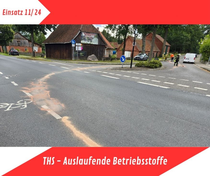 Am Dienstagabend wurde die Feuerwehr Düshorn zu einer Strassenverunreinung alarmiert. Der Kreuzungsbereich wurde abgestreut und die Einsatzstelle an die Straßenbaulastträger übergeben.