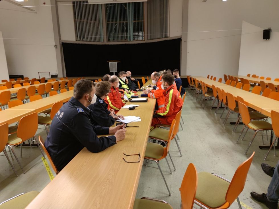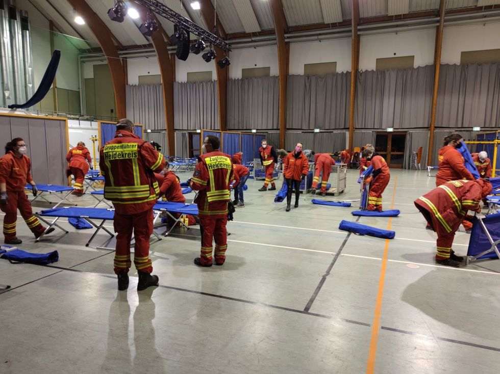 tagte kurzfristig eine Abordnung von der Katastrophenschutzbehörde des Heidekreises und den Hilfsorganisationen.Schnell fiel der Entschluss eine weitere Notunterkunft einzurichten, damit niemand die Nacht im Freien verbringen musste.