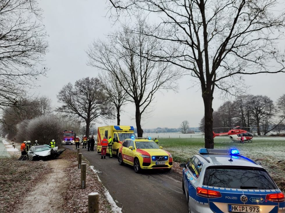 Am 23.12.2021 gegen 12 Uhr kam es aus noch nicht geklärter Ursache im Düshorner Rehrweg zu einem schweren Verkehrsunfall.