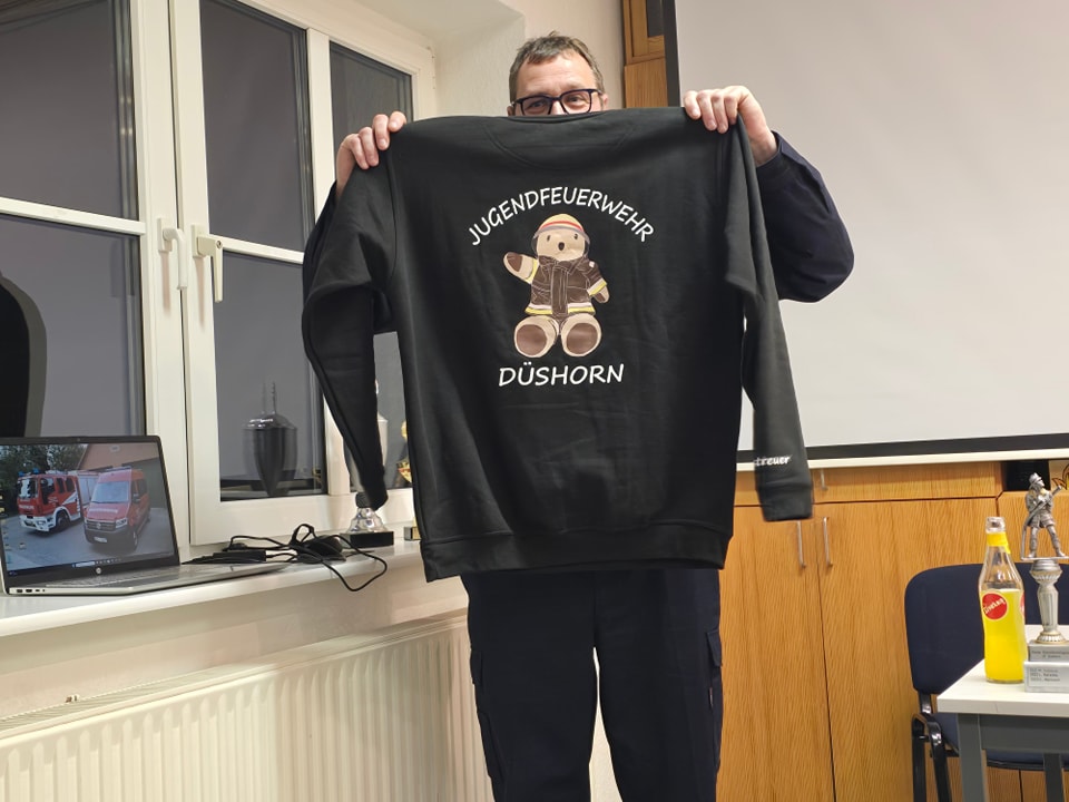 Zum Abschluss zeigte Mirko Deuerling noch ein Muster der neuen Pullover, der von den Jugendlichen gestaltet wurde und das Maskottchen Gernot zeigt.