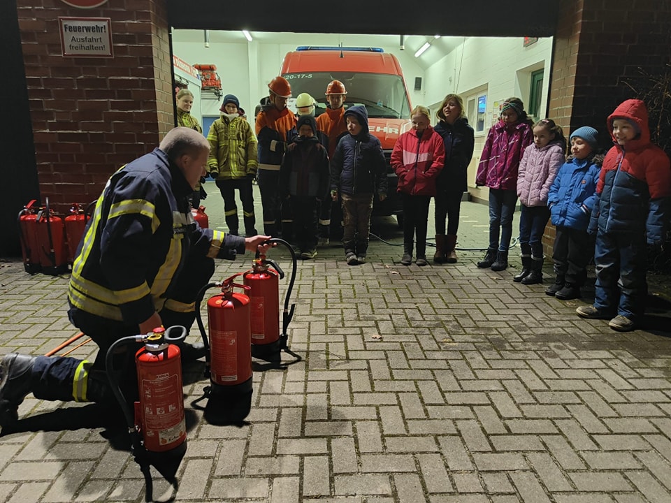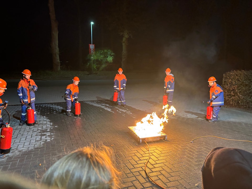 Die Kinderfeuerwehr schnupperte bei einem Dienst der Jugendfeuerwehr hinein. Nach einer kurzen Begrüßung wurde zuerst besprochen was ein Feuer benötigt um zu brennen. Danach folgten die Brandklassen mit den dazugehörigen Löschmitteln.