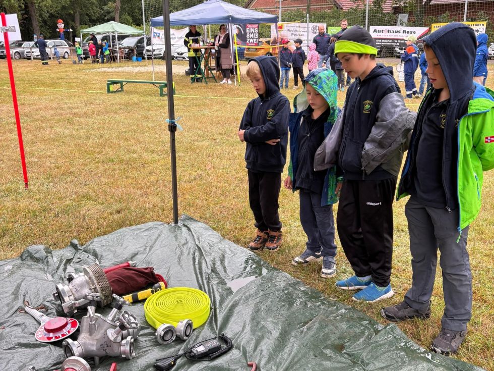 (mh) Am vergangenen Samstag fand der diesjährige Kreiskinderfeuerwehrtag in Groß Eilstorf statt. Zwölf Kinderfeuerwehren waren mit 24 Gruppen vertreten. Die Löschknirpse aus Düshorn belegten die Plätze 12 und 5.