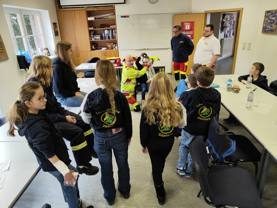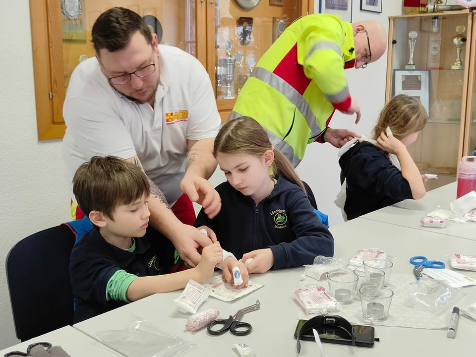 Erste Hilfe ist wichtig und durch regelmäßige Auffrischung des gelernten wird man sicherer bei der Anwendung. Diesmal war der ASB-Regionalverband Südheide „zu Besuch“ .Frank, Manuel und Manfred sorgten für einen interessanten Vormittag. Die Löschknirpse lernten wie man Hilfe anfordern kann wenn sich jemand verletzt hat, Pflaster und Verbände anzulegen, und was bei den verschiedenen Verletzungen zu tun ist.