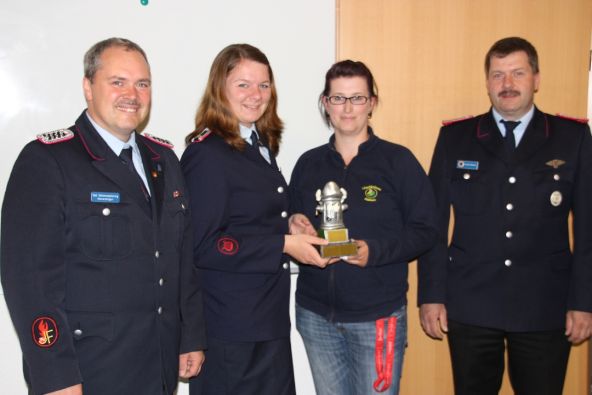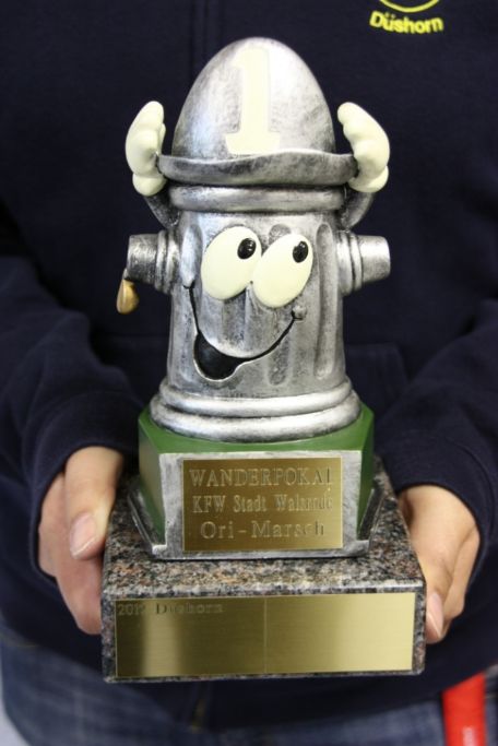 Am Freitag war es soweit - die Kinderfeuerwehr Düshorn war mit 18 Kindern im Feuerwehrhaus, um dort zu übernachten. Mit einem Überraschungsbesuch durch den Stadtjugendfeuerwehrwart Olaf Schimmelpfennig, seine Stellevertreterin Mareike Dopmann und den Ortsbrandmeister Frank Schmidt hatten sie nicht gerechnet. Der Pokal wurde an Kerstin Schwanke und Brigitte Treptow überreicht, weil die Düshorner Kids beim letzten Orientierungsmarsch den ersten Platz belegt hatten. Die Nachwuchsbrandschützer und Betreuer waren begeistert und freuten sich riesig über die Überraschung. Im kommenden Jahr werden sie sich besonders anstrengen, um ihn behalten zu können, ansonsten wandert er an eine andere Kinderfeuerwehr aus dem Stadtgebiet.