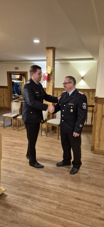 Bevor die eigentlichen Ehrungen an der Reihe waren, war die Überraschung bei einem der Anwesenden groß. Jens von Fintel, Ortsbrandmeister der Feuerwehr Hamwiede, wurde für besondere Verdienste mit dem deutschen Feuerwehr Ehrenkreuz in Bronze ausgezeichnet. Eigentlich sollte diese Ehrung bei der Verbandsversammlung des Kreisfeuerwehrverbandes Heidekreis e.V. erfolgen, wo von Fintel jedoch verhindert war.