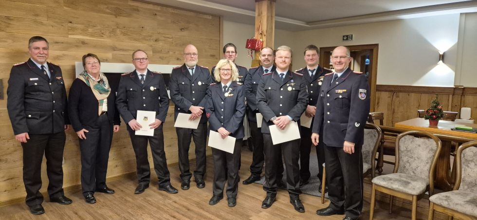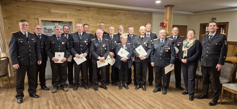 Im Anschluss wurden die folgenden Einsatzkräfte für ihr langjähriges Engagement ausgezeichnet. Personen welche noch im aktiven Einsatzdienst stehen, bekamen die Ehrenzeichen des Landes Niedersachsen von Bürgermeisterin Spöring verliehen, Mitglieder der Altersabteilungen die Ehrenzeichen des Landesfeuerwehrverbandes Niedersachsen durch Matthias Meyer: